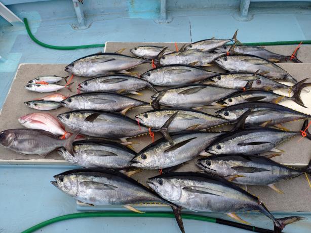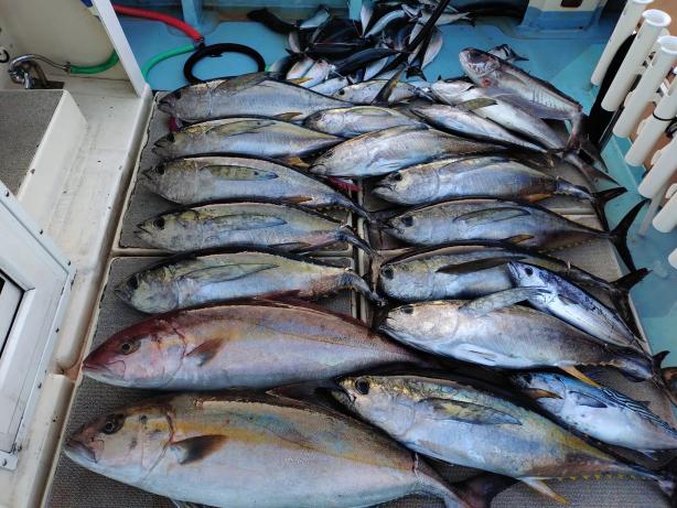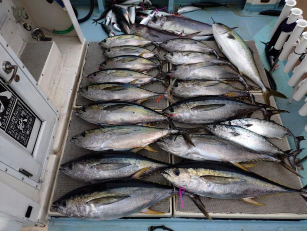 カンパチ~20k・キハダ16k 3名様でキハダ1時間半の釣果